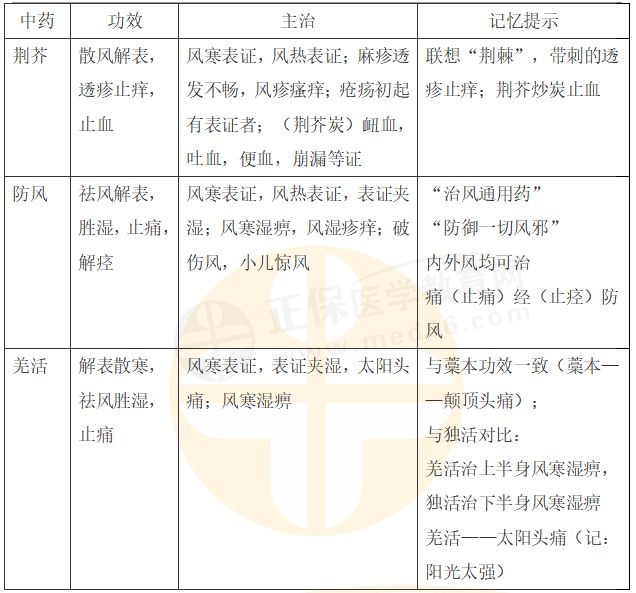 【解析】防風(fēng)【主治病證】(1)風(fēng)寒表證,風(fēng)熱表證,表證夾濕。(2)風(fēng)寒濕痹,風(fēng)濕疹癢。(3)破傷風(fēng),小兒驚風(fēng)。注意防風(fēng)不能補(bǔ)血,不治療血虛發(fā)痙。