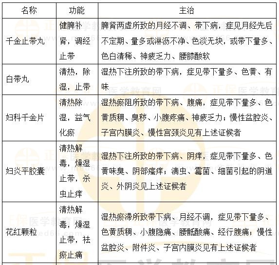 (2)除了千金止帶丸外,其余成藥均是治療濕熱下注或是濕熱瘀滯引起的帶下病。