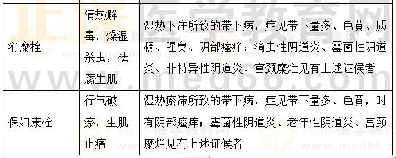 (3)注意清熱祛濕止帶劑中:婦科千金片具有益氣的功能;婦炎平膠囊、消糜栓能殺蟲(chóng)止癢,消糜栓還能袪腐生?。槐D康栓能破瘀、生肌止痛。