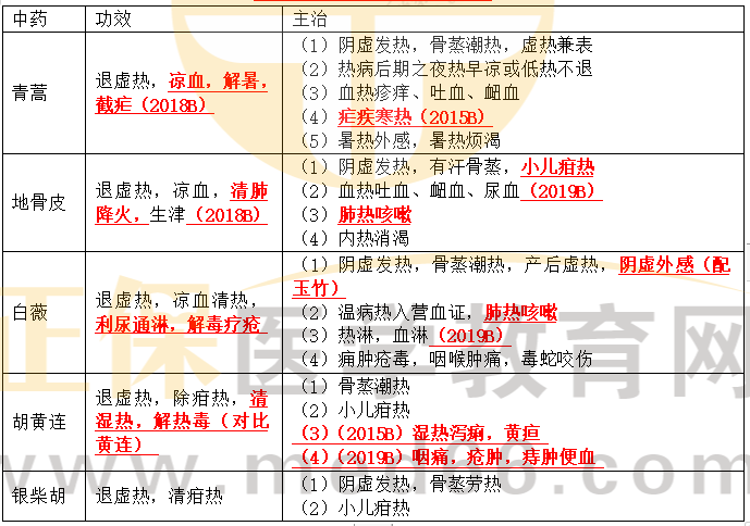 清虛熱藥-2023《中藥二》??键c(diǎn)