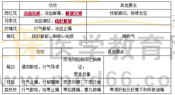 『答案解析』梅花主治病證:①肝胃氣滯之脅肋胃脘脹痛、噯氣。②梅核氣。