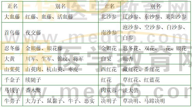 2.【問題】老師,處方中常見的正名與別名有哪些?