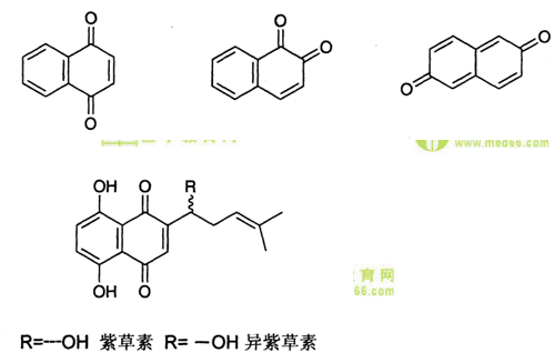 萘醌 | 紫草 | 紫草素、異紫草素 | |