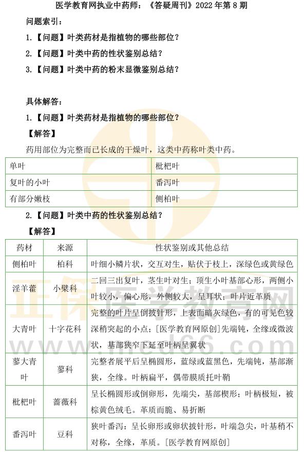 醫(yī)學(xué)教育網(wǎng)執(zhí)業(yè)中藥師:《答疑周刊》2022年第8期