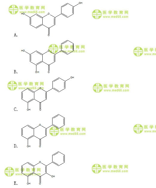 【解析】黃酮類化合物酚羥基酸性強(qiáng)弱順序依次為:7,4′-二[醫(yī)學(xué)教育網(wǎng)原創(chuàng)]羥基>7或4′-羥基>一般酚羥基>5-羥基。所以酸性最強(qiáng)的是A.
