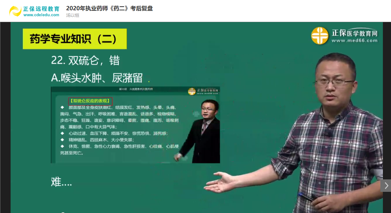 以上為醫(yī)學教育網(wǎng)2020執(zhí)業(yè)藥師《藥二》考后復盤直播部分截圖