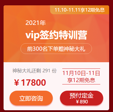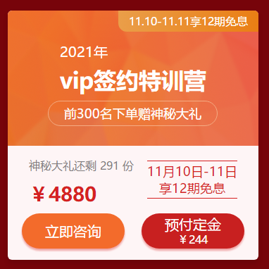 5.臨床醫(yī)師/執(zhí)業(yè)藥師VIP簽約特訓營11月10日-11日享受分期免息,前300名購課贈送神秘大禮(執(zhí)業(yè)藥師僅限全科學員);