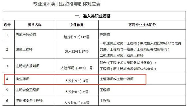 福建省人力資源和社會保障廳發(fā)布的《關(guān)于建立部分專業(yè)技術(shù)職業(yè)資格和職稱對應(yīng)關(guān)系的通知》,通知提到用人單位可根據(jù)相關(guān)任職條件和崗位空缺情況聘任相應(yīng)的專業(yè)技術(shù)職務(wù),其中執(zhí)業(yè)藥師可聘主管藥師或中藥師專業(yè)技術(shù)職務(wù)!