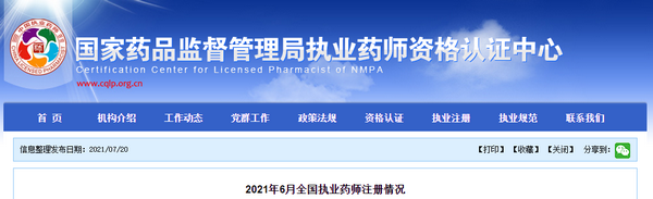 2021年6月全國執(zhí)業(yè)藥師注冊情況
