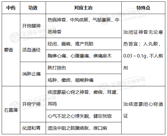 知識點(diǎn)2:開竅藥重點(diǎn)中藥