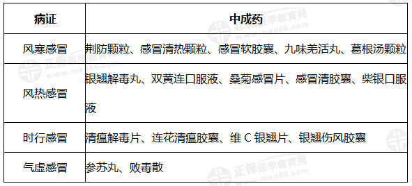 知識點1:內(nèi)科常見病辨證論治——感冒的中成藥選用
