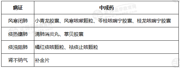 知識點3:內(nèi)科常見病辨證論治-喘證各證型的中成藥選用