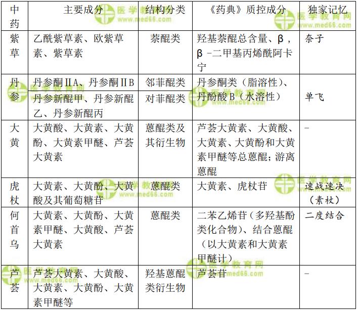 含醌類常用中藥化學結(jié)構(gòu)類型與質(zhì)量控制成分-2023《中藥學專業(yè)知識一》記憶口訣
