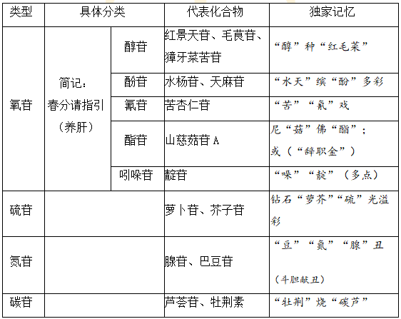 生物堿 | 防己、川烏、馬錢(qián)子、苦參、千里光、延胡索、天仙子、洋金花、黃連、山豆根、雷公藤、麻黃 | 天仙黃馬千里川,雷公嚴(yán)防黃花山——苦 天仙(天仙子)黃(黃連)馬(馬錢(qián)子)千里(千里光)川(川烏),雷公(雷公藤)嚴(yán)(延胡索)防(防己)黃(麻黃)花(洋金花)山(山豆根)——苦(苦參) |