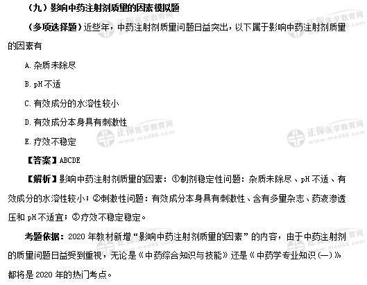 根據(jù)2020年執(zhí)業(yè)藥師《中藥學(xué)專業(yè)知識(一)》最新版教材,醫(yī)學(xué)教育網(wǎng)整理了2020新增考點模擬題+考點整理+考察概率!以下是相應(yīng)內(nèi)容的第二部分,有習(xí)題,有答案解析,考生請務(wù)必收藏好!以方便后續(xù)備考時使用!