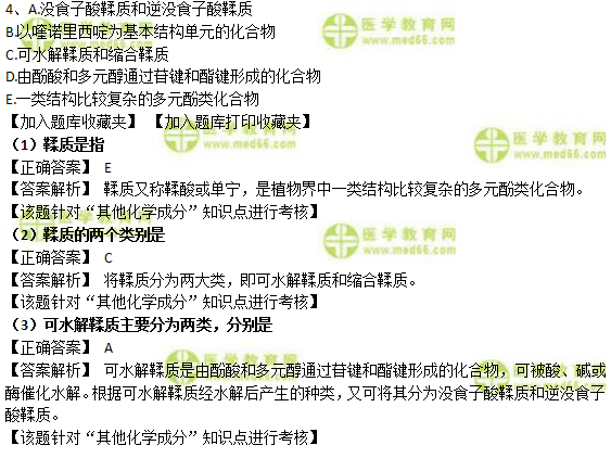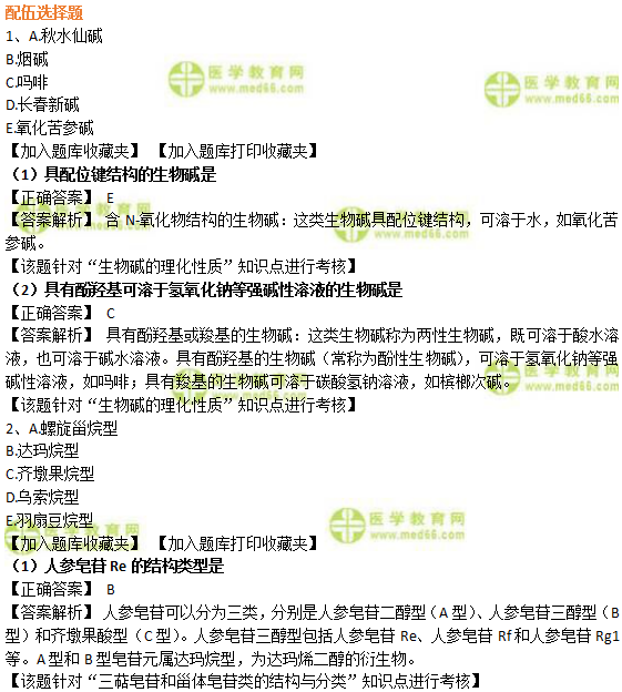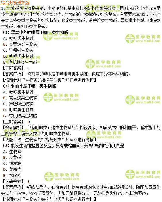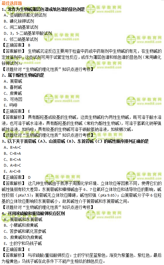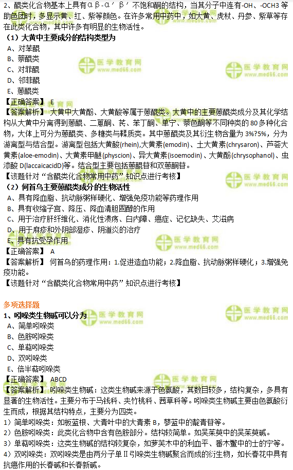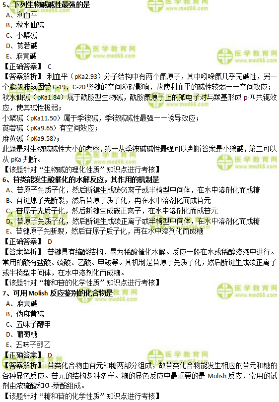 “第三章生物堿、糖和苷等重要知識(shí)”練習(xí)題