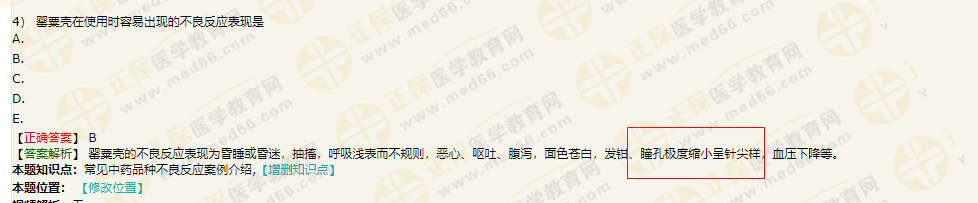 8.可引起惡心,嘔吐,腹瀉,面色蒼白,瞳孔極度縮小,血壓下降,昏睡,呼吸淺而不規(guī)則等不良反應(yīng)的飲片是