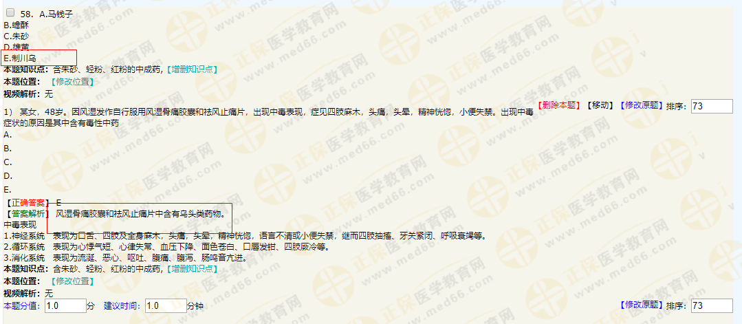 53.根據(jù)《中國(guó)藥典》,內(nèi)服劑量為0.015——0.03g的毒性中藥是