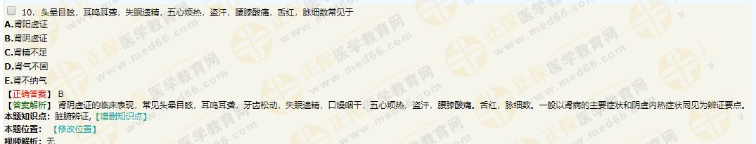A.肝腎陰虛證臨床表現(xiàn)為頭暈?zāi)垦#捎米趟痉?/p>