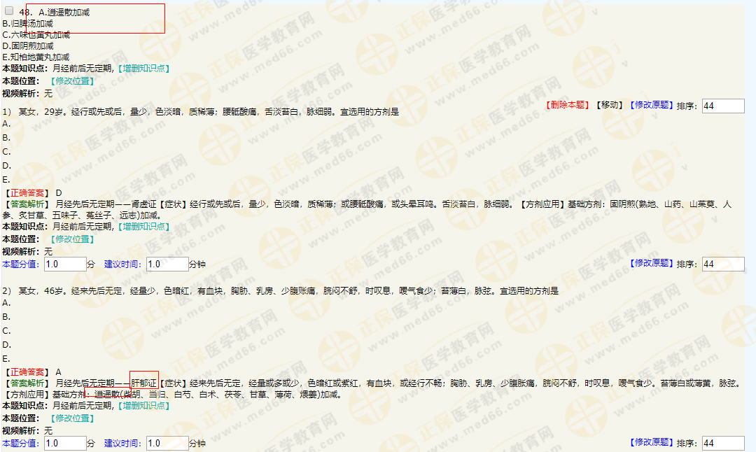 55.某女,27歲。月經(jīng)或提前或錯(cuò)后,經(jīng)量時(shí)多時(shí)少,色暗紅或紫紅,夾有血塊,經(jīng)行不暢,胸脅、乳房、少腹脹痛,脘悶不舒,時(shí)嘆息,噯氣食少;苔薄黃,脈弦。宜選用的基礎(chǔ)方劑是