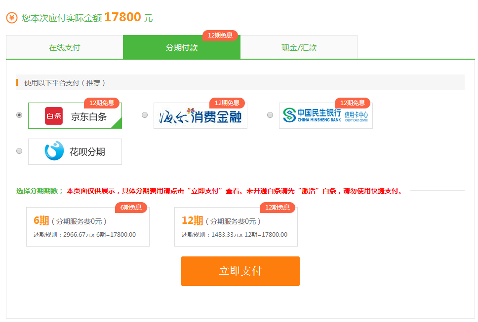 京東白條免息: