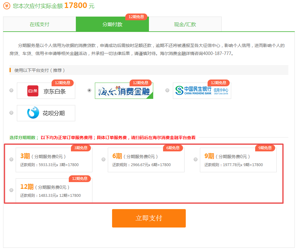 海爾免息: