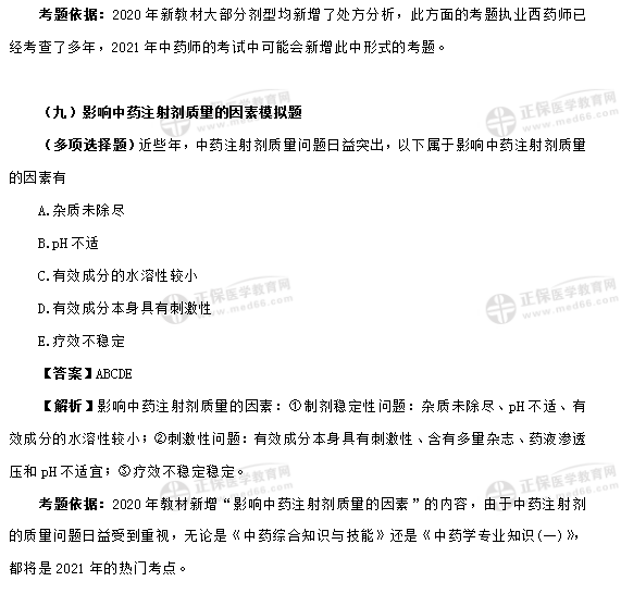 2020年執(zhí)業(yè)藥師各科目考試教材變動(dòng)是近5年最大的一次!2021年對(duì)部分內(nèi)容也進(jìn)行了修訂,那么,根據(jù)2021年執(zhí)業(yè)藥師最新版教材,醫(yī)學(xué)教育網(wǎng)整理了近兩年新增考點(diǎn)模擬題+考點(diǎn)整理!有習(xí)題,有答案解析,更有相應(yīng)的考點(diǎn)整理!考生請(qǐng)務(wù)必收藏好!以方便后續(xù)備考時(shí)使用!