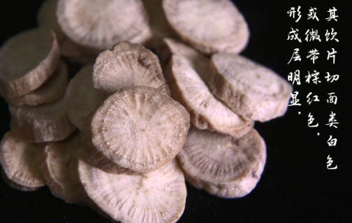 4.其飲片切面類白色或微帶棕紅色,形成層明顯,可見稍隆起的筋脈紋呈放射狀排列