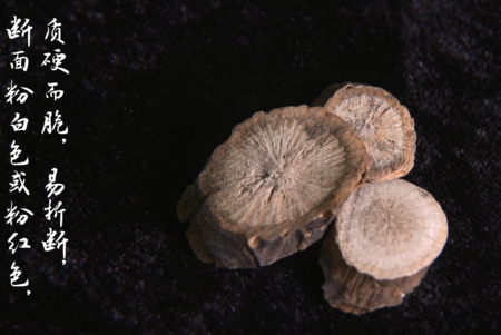 3.質(zhì)硬而脆,易折斷,斷面粉白色或粉紅色,皮部窄,木部放射狀紋理明顯,有的有裂隙