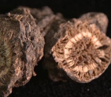 2.頂端具莖痕,表面棕褐色至黑褐色,外皮脫落處呈黃色