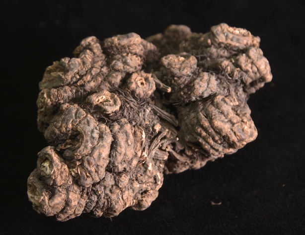 2.表面黃褐色,粗糙皺縮,有多數(shù)平行隆起的輪節(jié),頂端有凹陷的類圓形莖痕,下側(cè)及輪節(jié)上有多數(shù)小瘤狀根痕