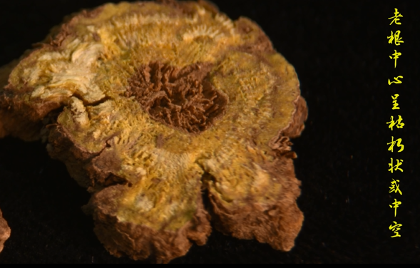 4.老根中心呈枯朽狀或中空,暗棕色或棕黑色