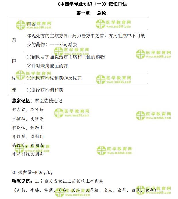 《中藥一》全章節(jié)考點(diǎn)速記口訣,完整版下載: 2021年《中藥學(xué)專業(yè)知識(shí)(一)》記憶口訣