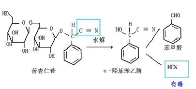 【答案解析】 苦杏仁苷是一種氰苷,易被酸和酶所催化水解。水解所得到的苷元α-羥基苯乙腈很不穩(wěn)定,易分解生成苯甲醛和氫氰酸。