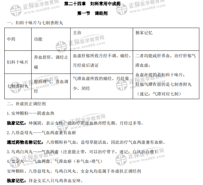 2022年《中藥二》第二十四章 婦科常用中成藥 重點記憶口訣!