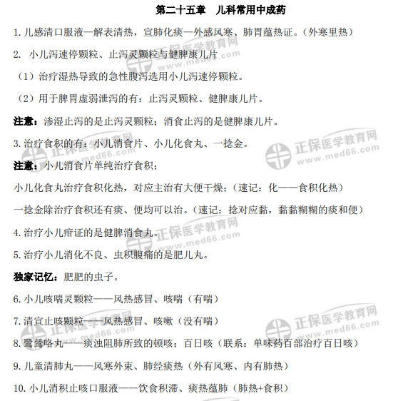 2022年《中藥二》第二十五章 兒科常用中成藥 重點記憶口訣!