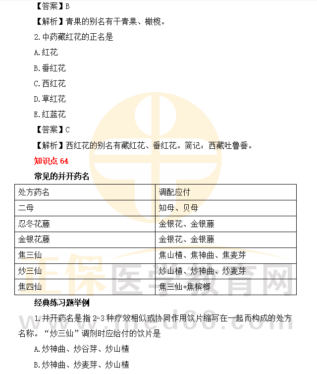 2022《中藥綜》100個(gè)精選考點(diǎn)+配套200個(gè)習(xí)題(61-65條)