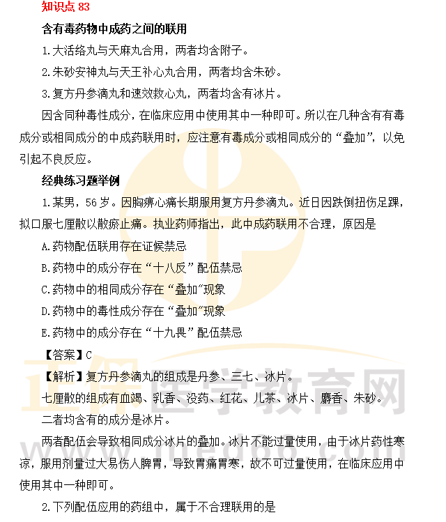 2022《中藥綜》100個精選考點+配套200個習(xí)題(81-85條)