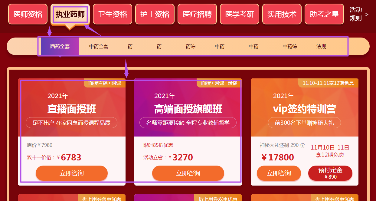 醫(yī)學(xué)教育網(wǎng)"爽”11期間2021年執(zhí)業(yè)藥師面授課程也參與優(yōu)惠,執(zhí)業(yè)藥師面授課程限時(shí)85折優(yōu)惠!和平時(shí)相比能省多少錢?快來看看吧!