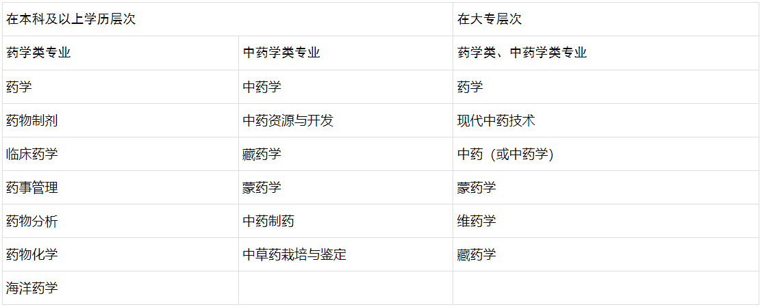 報(bào)考條件中要求的“藥學(xué)類(lèi)、中藥學(xué)類(lèi)專(zhuān)業(yè)”,按照國(guó)務(wù)院學(xué)位委員會(huì)、教育部印發(fā)的《學(xué)位授予和人才培養(yǎng)學(xué)科目錄設(shè)置與管理辦法》、《普通高等學(xué)校高等職業(yè)教育(專(zhuān)科)專(zhuān)業(yè)設(shè)置管理辦法》和《學(xué)位授予和人才培養(yǎng)學(xué)科目錄》、《普通高等學(xué)校本科專(zhuān)業(yè)目錄(2012年)》、《普通高等學(xué)校高等職業(yè)教育(專(zhuān)科)專(zhuān)業(yè)目錄(2015年)》等規(guī)定,對(duì)照學(xué)科目錄來(lái)界定。