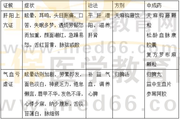 《中藥綜》知識(shí)點(diǎn):眩暈的辨證論治