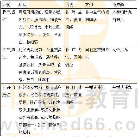《中藥綜》知識(shí)點(diǎn):月經(jīng)先期的辨證論治