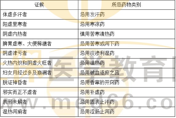 《中藥綜》知識(shí)點(diǎn):證候禁忌