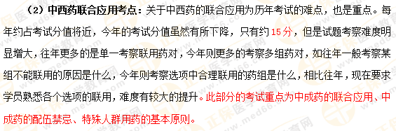 以上即為“《中藥綜》中西藥聯(lián)合應用及中藥的調劑與儲藏養(yǎng)護考點總結!”的相關內容介紹,更多執(zhí)業(yè)藥師考試動態(tài)請關注醫(yī)學教育網!