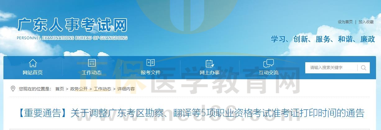 廣東人事考試網(wǎng)發(fā)布了《【重要通告】關(guān)于調(diào)整廣東考區(qū)勘察、翻譯等5項(xiàng)職業(yè)資格考試準(zhǔn)考證打印時(shí)間的通告》,具體通知內(nèi)容如下: