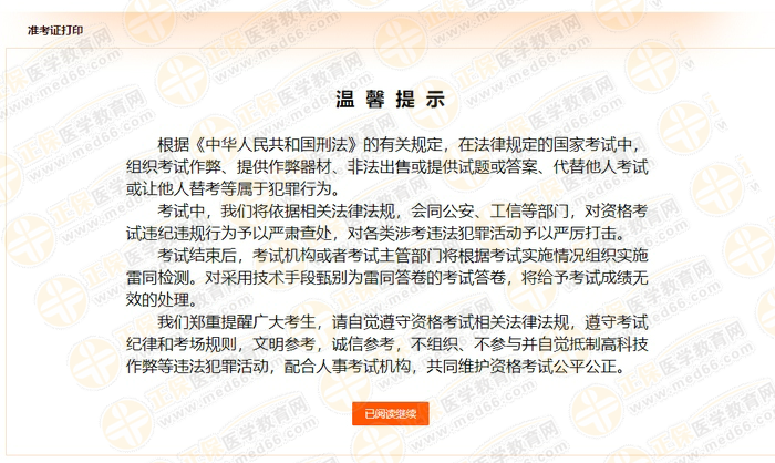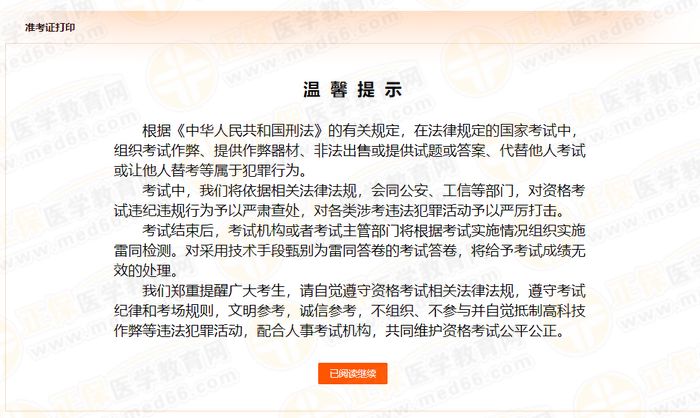 ③進入“溫馨提示”頁面,點擊“已閱讀繼續(xù)”。