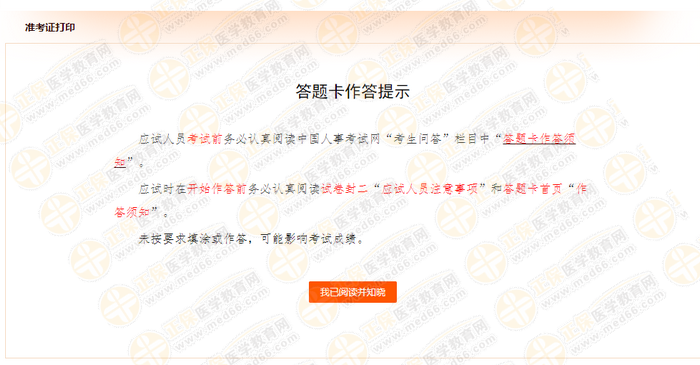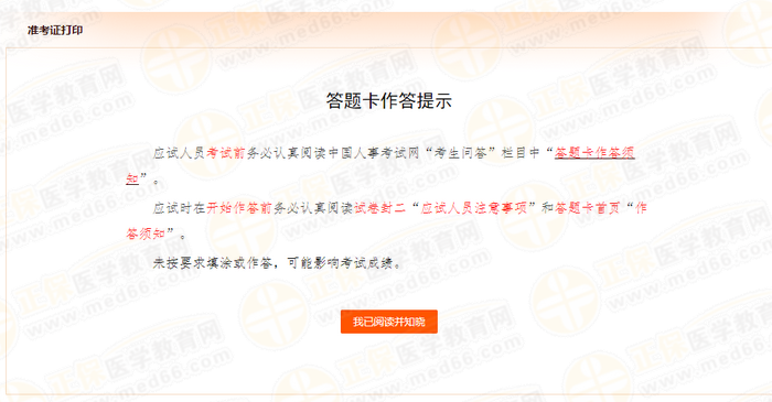 ④進入“答題卡作答提示”頁面,點擊“我已閱讀并知曉”。