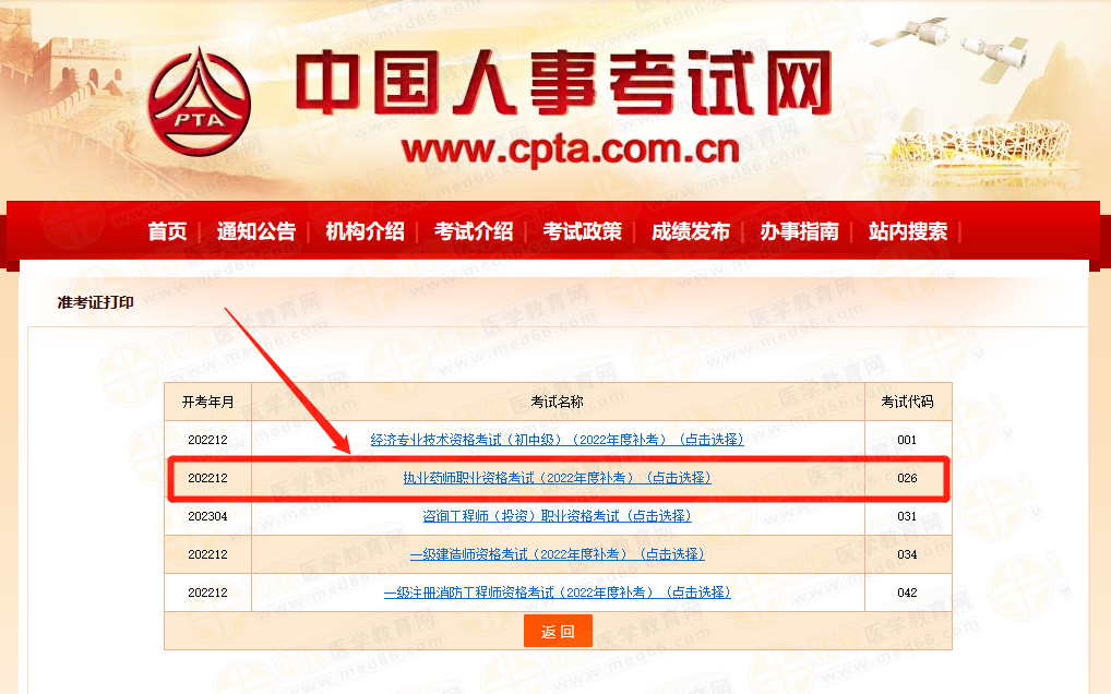 執(zhí)業(yè)藥師補(bǔ)考準(zhǔn)考證打印入口: