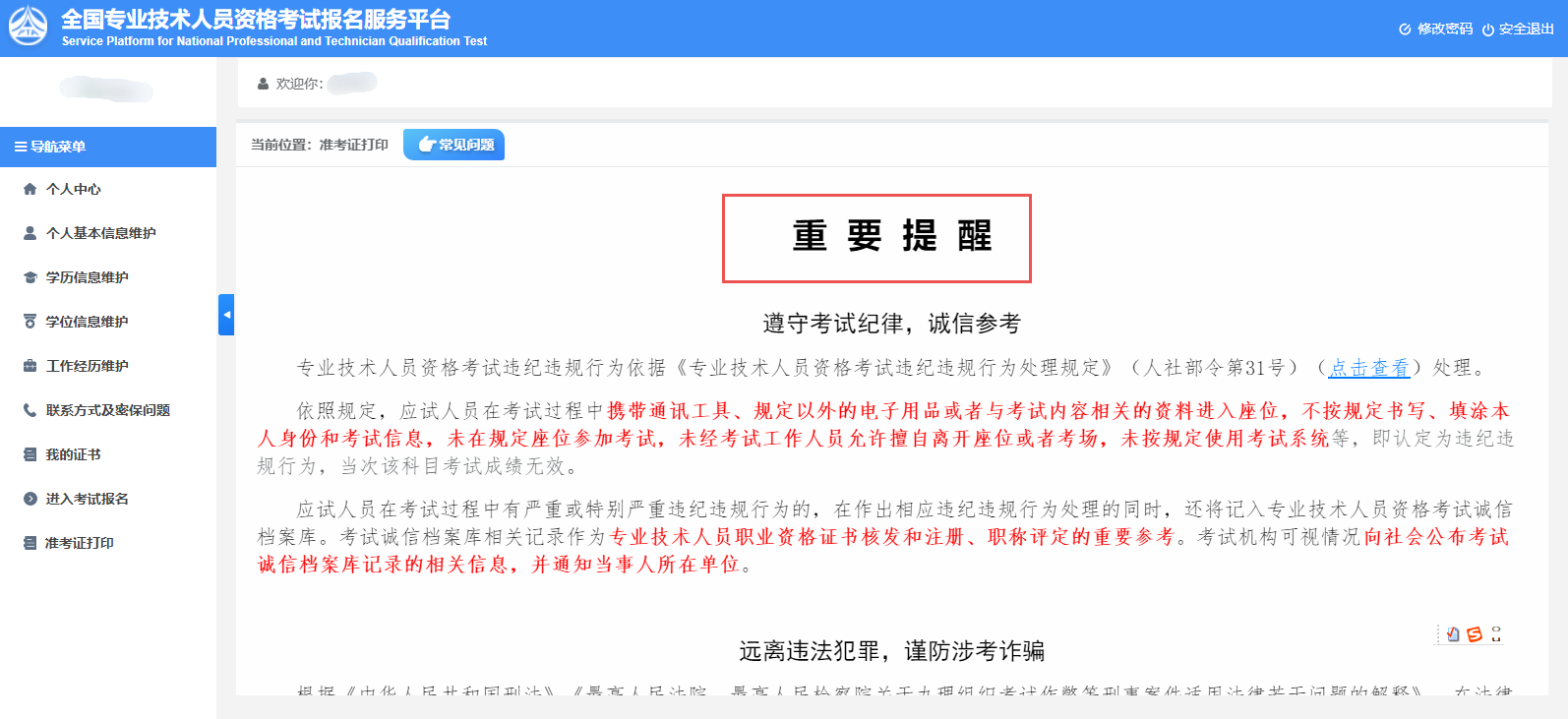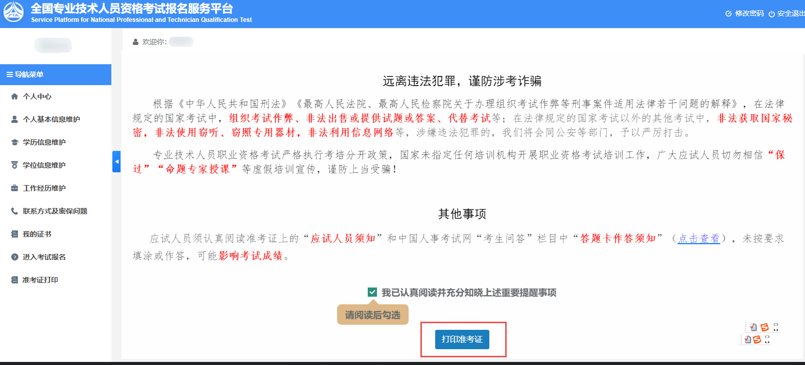 準考證打印步驟 | 考前溫馨提示 |