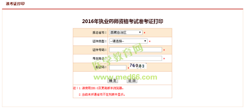 西藏2016年執(zhí)業(yè)藥師考試準考證打印入口: